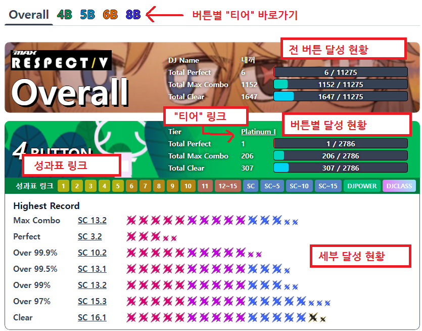 - 나와 "티어"점수와 비슷한 다른 사용자들의 평균 점수와 내 점수를 비교합니다.