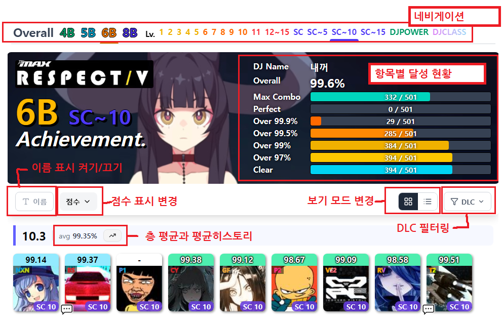 - DJ POWER를 표시합니다. TOP 100에 포함되면 색깔로 표현합니다.