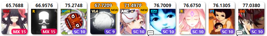 - "티어" 시스템에 의해 계산된 레이팅을 표시합니다. TOP 50에 포함되면 색깔로 표현합니다.