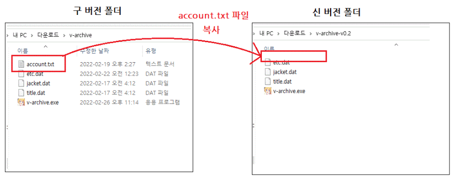 자동 로그인이 안된다면 기존 버전 폴더에 있는 account.txt 파일을 새 버전 폴더에 복사해 넣으면 됩니다.