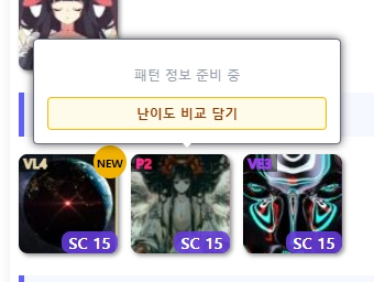 자켓 이미지를 클릭하면 뜨는 자켓레이어에서 "난이도 비교 담기" 클릭
