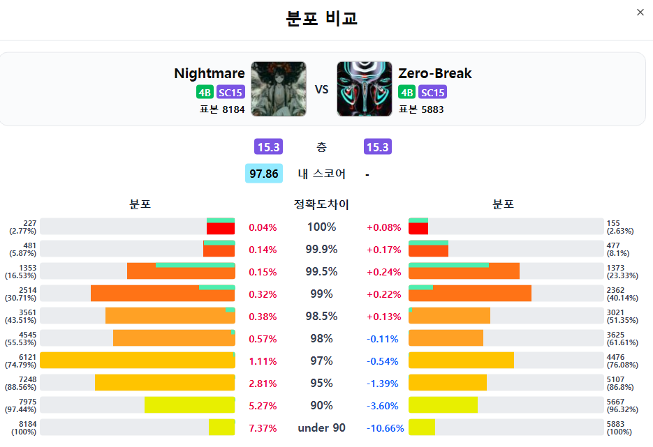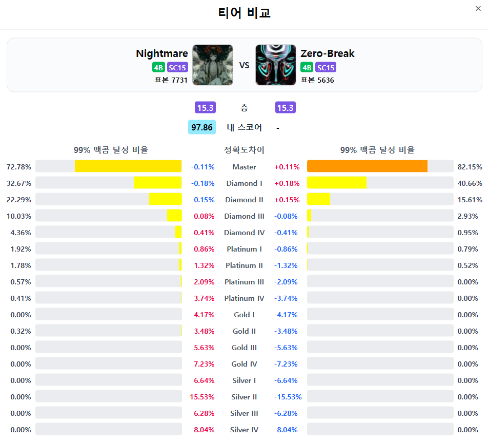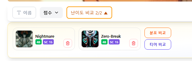 상단 컨트롤러 영역에서 난이도비교 (분포비교/티어비교) 클릭